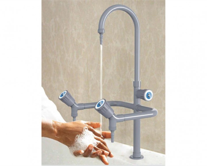 三联水龙头: 水龙头要求为铜质水嘴,具有降低水压及隔栅型铜制一体成型实验室专用,主体为加厚铜质合金制作,表面高亮度环氧树脂喷涂处理,防酸碱、耐热、耐腐蚀。开关采用精密陶瓷阀心。其中包含下水套件:下水软管组件。