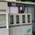 (2)柜体:木质基材采用中纤板,厚15mm,双面粘压实验室专用三聚氰胺防火板,所有截面以2mm厚PVC热熔胶防水封边处理。